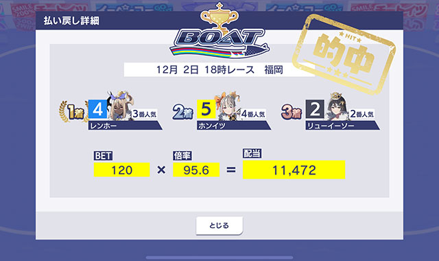 - ボートの結果確認方法が表示されます。