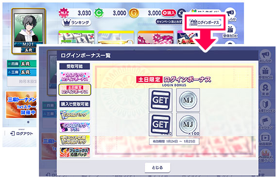 また、各種ログインボーナスの進行状況を確認できるようにします。