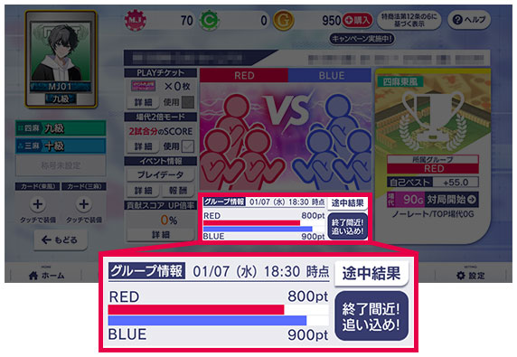 所属グループが勝利することで、より良い報酬を獲得することが出来ます。